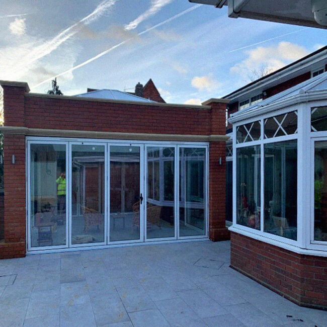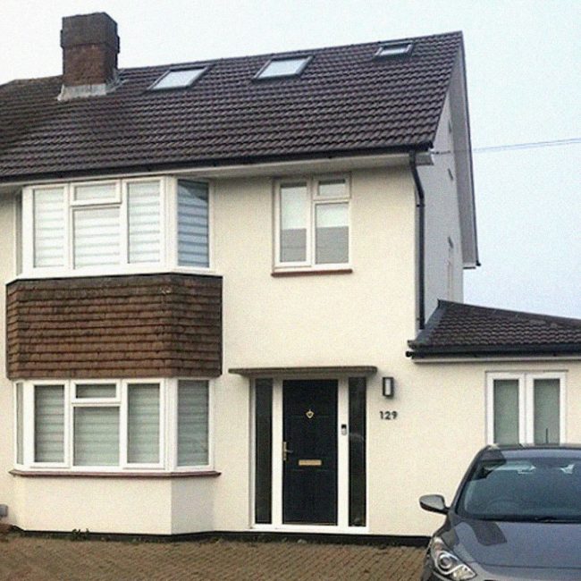 Construction of traditional timber frame, front, side and rear extension. This 4 bedroom / 4 bathroom dwelling also includes a modified pitch roof with high end finishes.